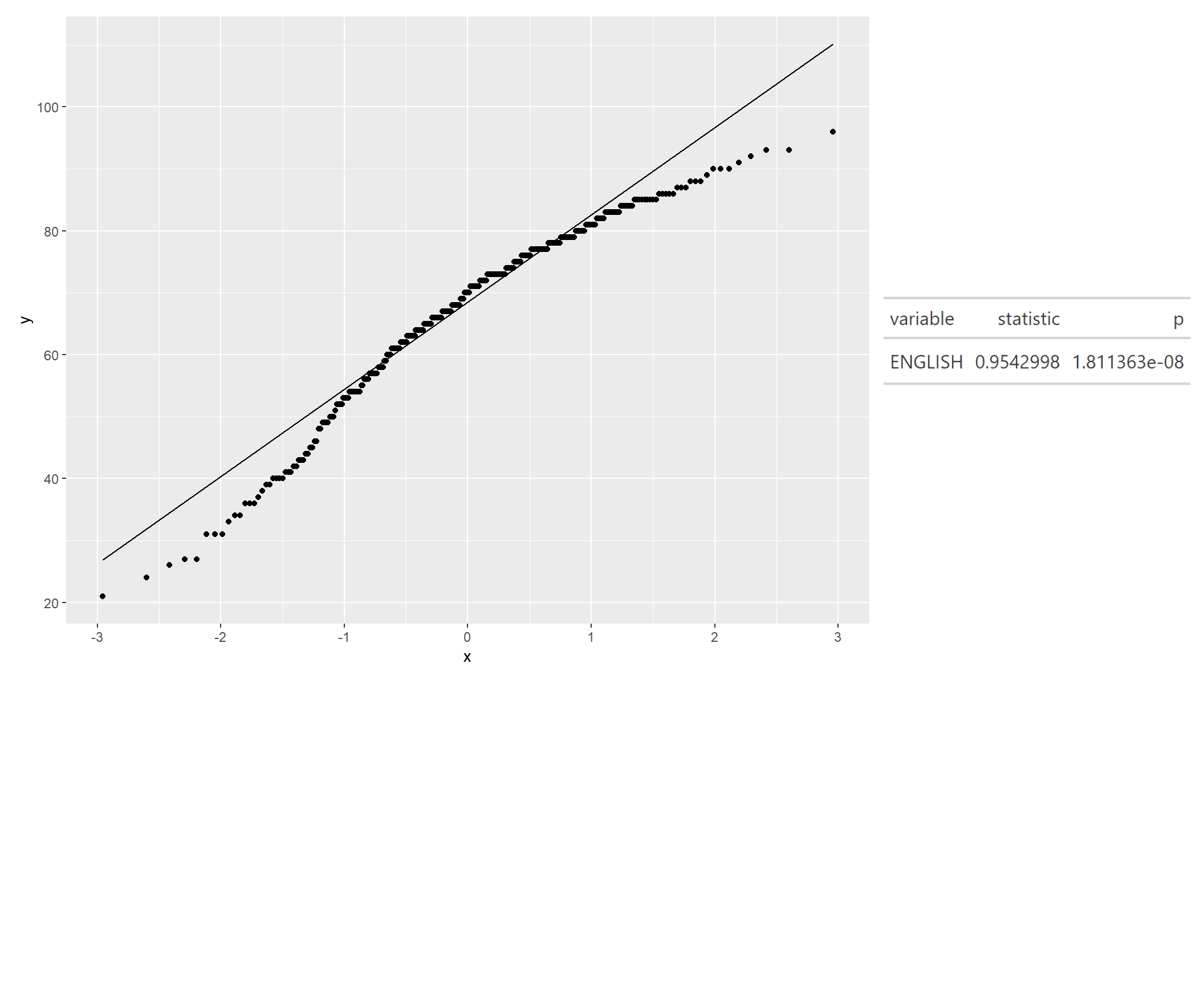In this case, we are checking if ‘English’ scores are normally distributed: